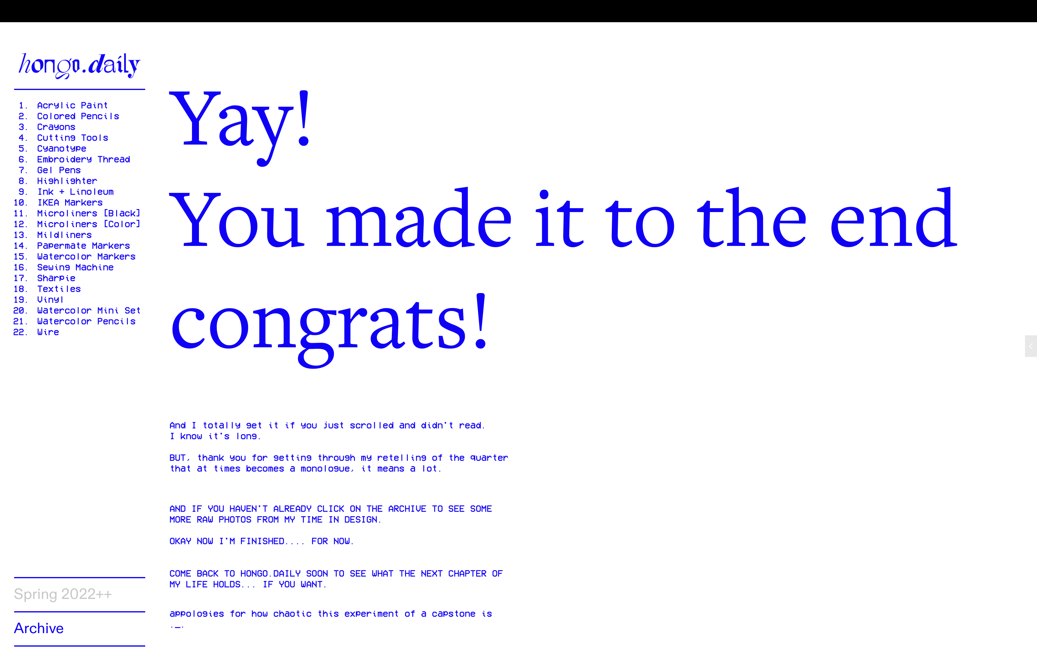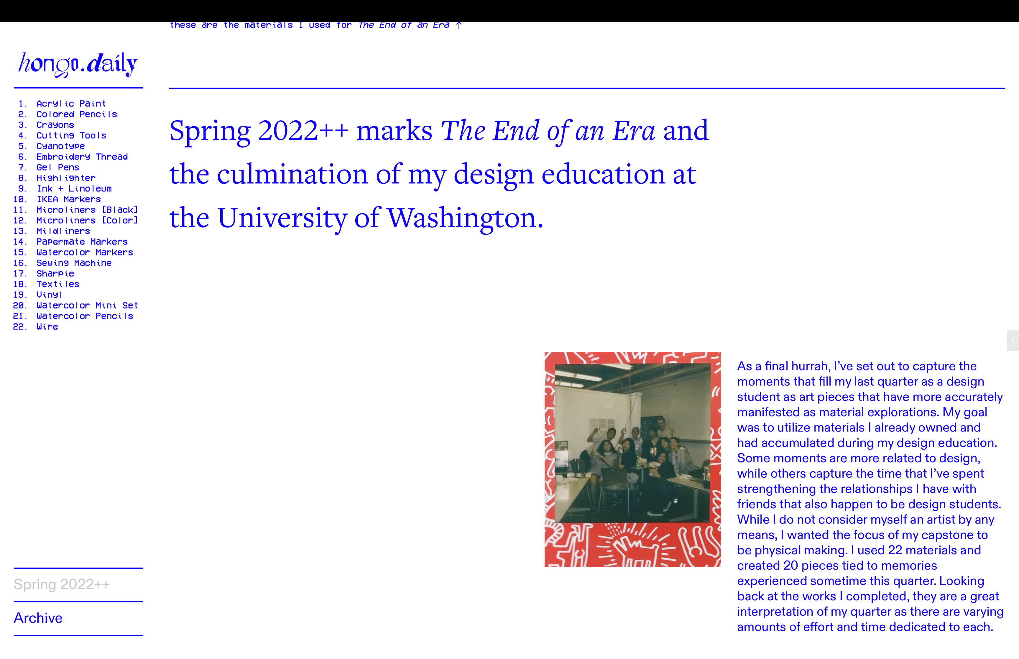 Spring 2022 market the End of an Era, my last 10 weeks as a design student at the University of Washington. For the closing of this chapter of my life I wanted to capture and recreate moments from this quarter as material explorations using all the tools I accumulated over the last four years as a design student.